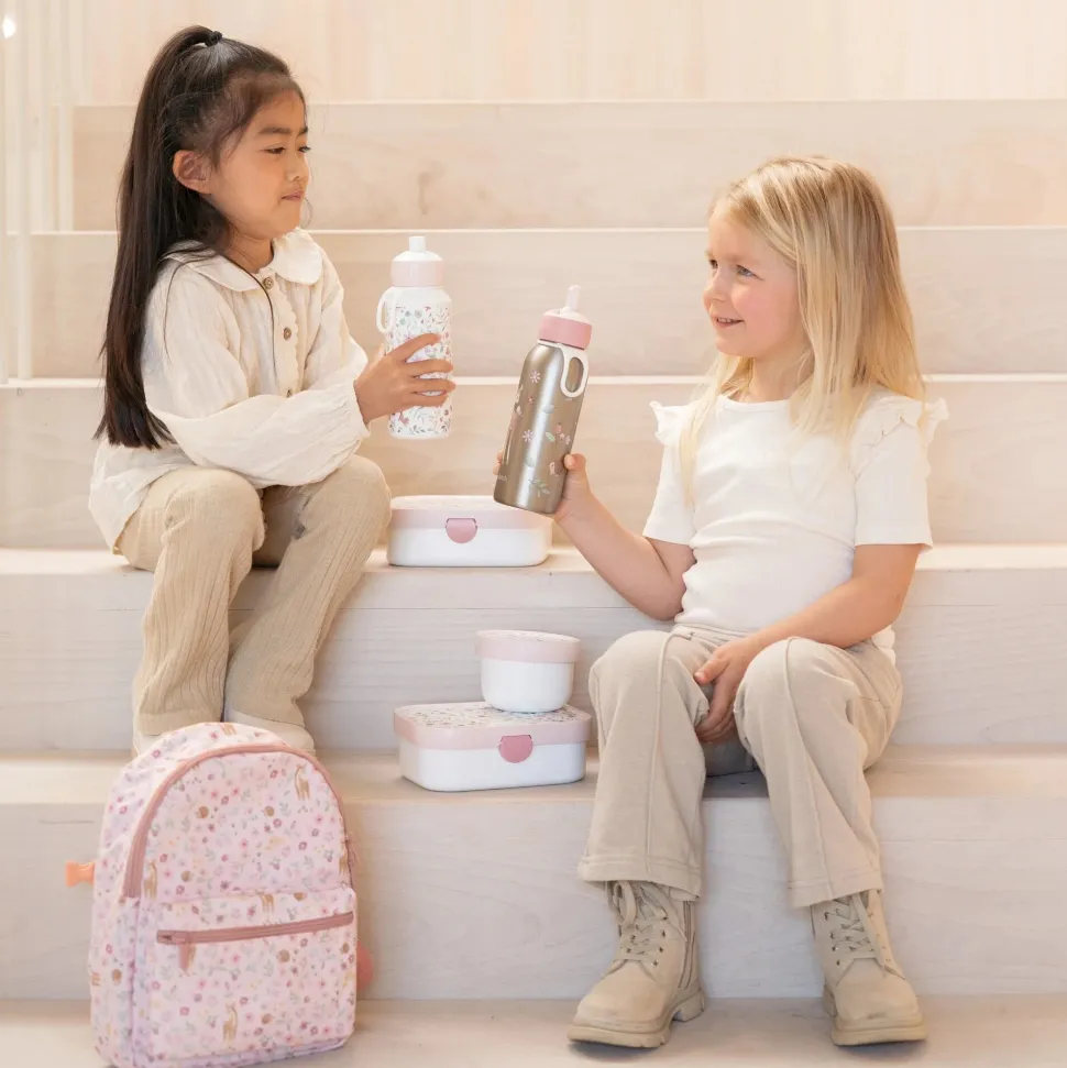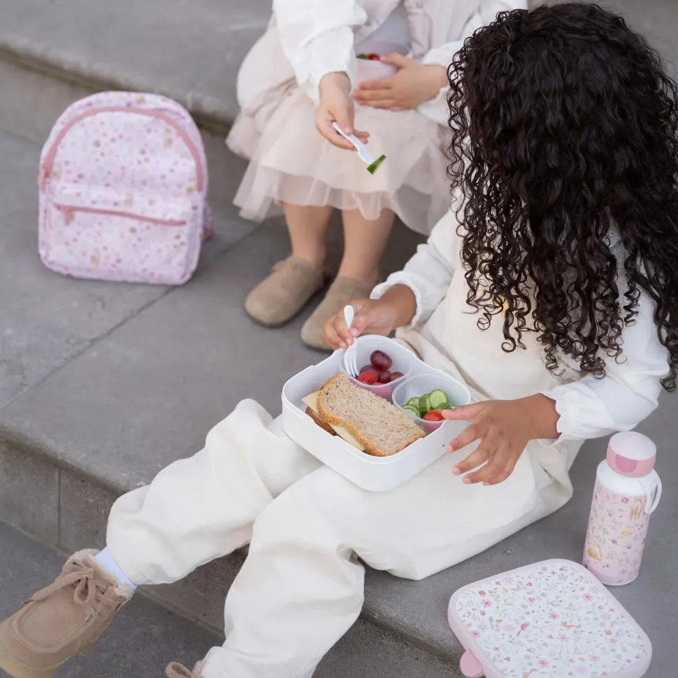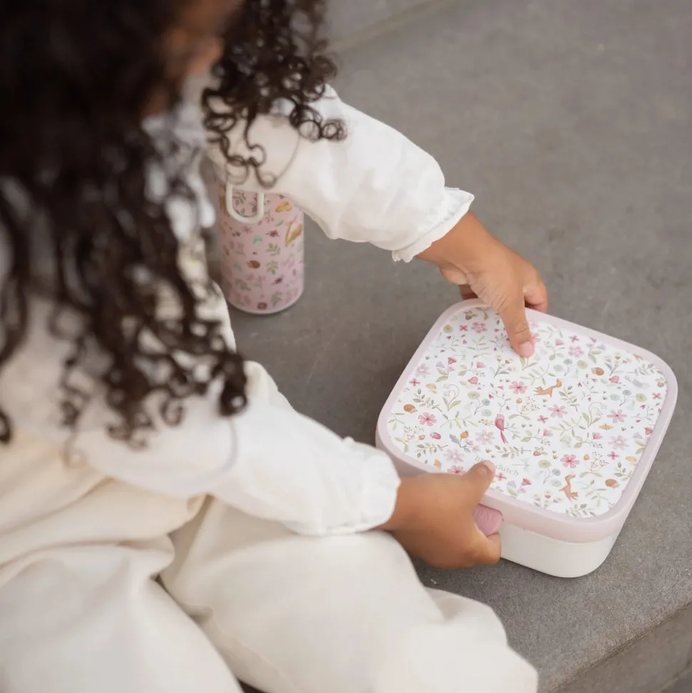 Een lunch vol verwondering. De extra grote lunchbox met het dromerige Fairy Wonders printje van Little Dutch is perfect voor kleine dagdromers die houden van afwisseling. De lunchbox bevat twee uitneembare, lekdichte bentobakjes en een handig vorkje. Zo neem je brood, fruit of een bakje yoghurt makkelijk mee. Alles blijft vers en netjes op z’n plek in de afsluitbare bakjes. Heb je liever één groot vak? Haal de bentobakjes eruit en je hebt alle ruimte voor boterhammen. Na gebruik mogen de lunchbox en bakjes gewoon in de vaatwasser, en de bakjes mogen zelfs zonder deksel in de magnetron. Makkelijk te openen door kleine handjes en met feeërieke illustraties die van elk eetmoment een klein feestje maken.