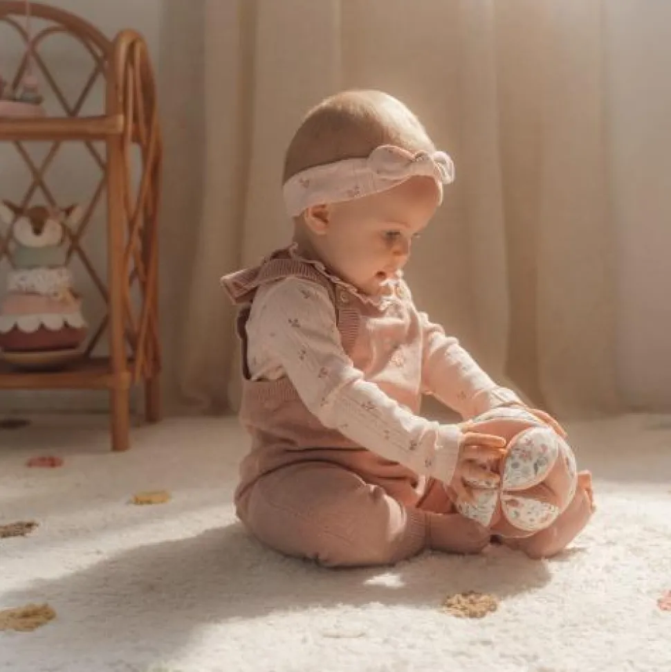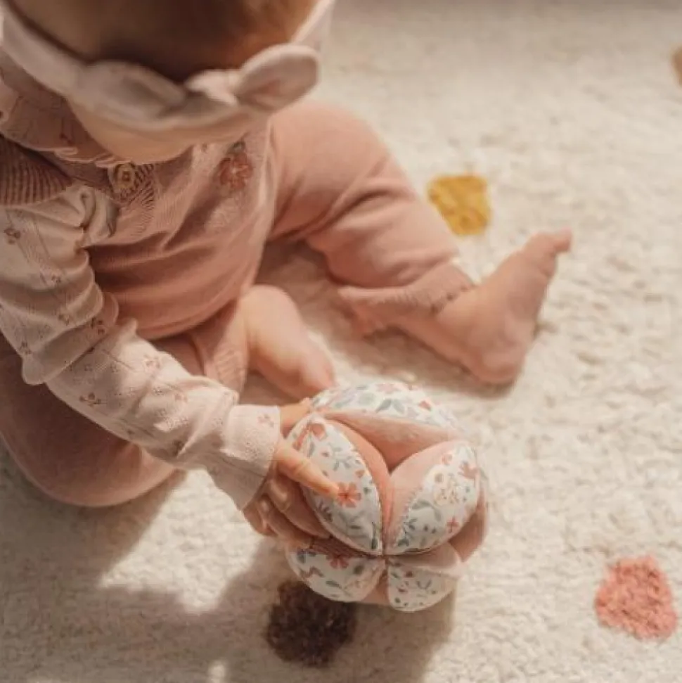 Probeer de bal maar te pakken! Deze grijpbal met zijn interessante vorm zorgt voor een geweldige uitdaging voor je kleintje. De vlakken van verschillende texturen en patronen nodigen uit om te grijpen en te verkennen. De bal is gemakkelijk op te pakken voor kleine handjes en het vrolijke geluid van het rammelende belletje beloont je baby’s inspanning. Op het mooie decor van Fairy Garden zullen de makkelijk vast te pakken verschillende leuke labels de zintuigen prikkelen, grip ontwikkelen en je baby flink bezig houden in de box.