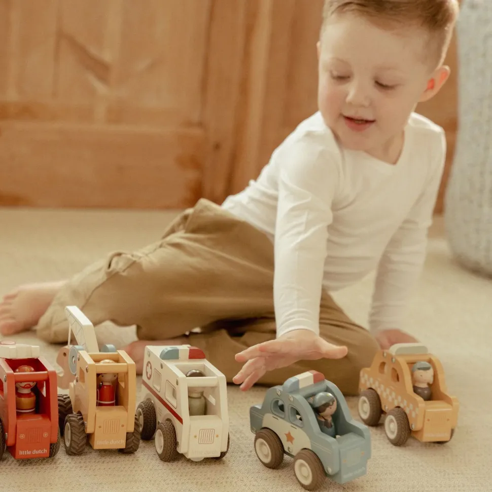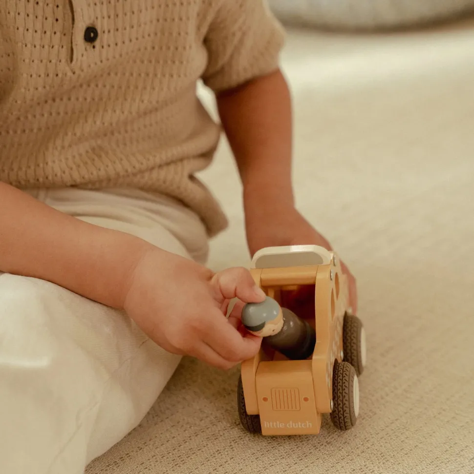 Stap in en laat je rondrijden! Deze houten taxi is klaar om passagiers veilig naar hun bestemming te brengen. De rubberen wielen laten hem soepel rijden en de chauffeur staat klaar om op pad te gaan. Rij door de drukke stad, stop bij het treinstation en breng iedereen veilig naar huis. Een tijdloos stuk speelgoed! Waar ga jij vandaag naartoe?