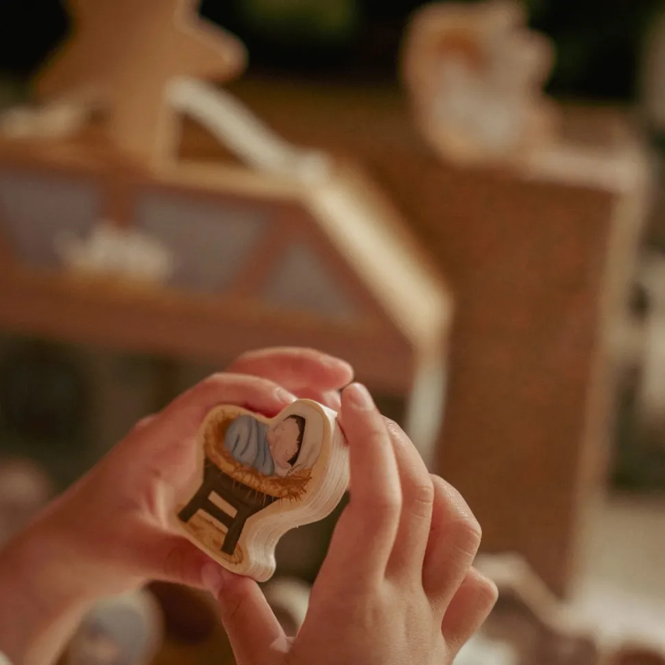 Deze prachtige kerststal speelkoffer brengt het traditionele kerstverhaal tot leven! De stevige kartonnen koffer bevat houten figuren van de kerststal, zoals Maria, Jozef en het kindje Jezus. Kinderen kunnen de figuren neerzetten en spelen, of de kerststal als decoratie onder de kerstboom plaatsen. Na het spelen berg je alles gemakkelijk weer op in de koffer.