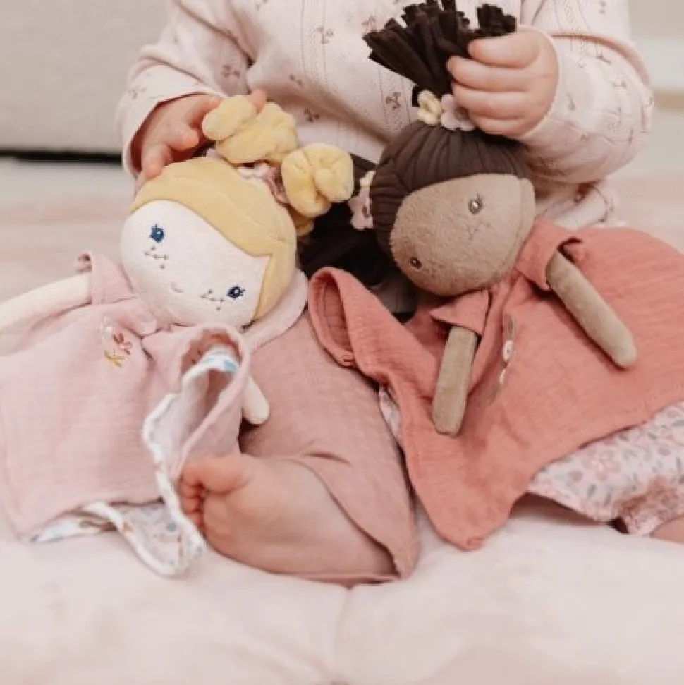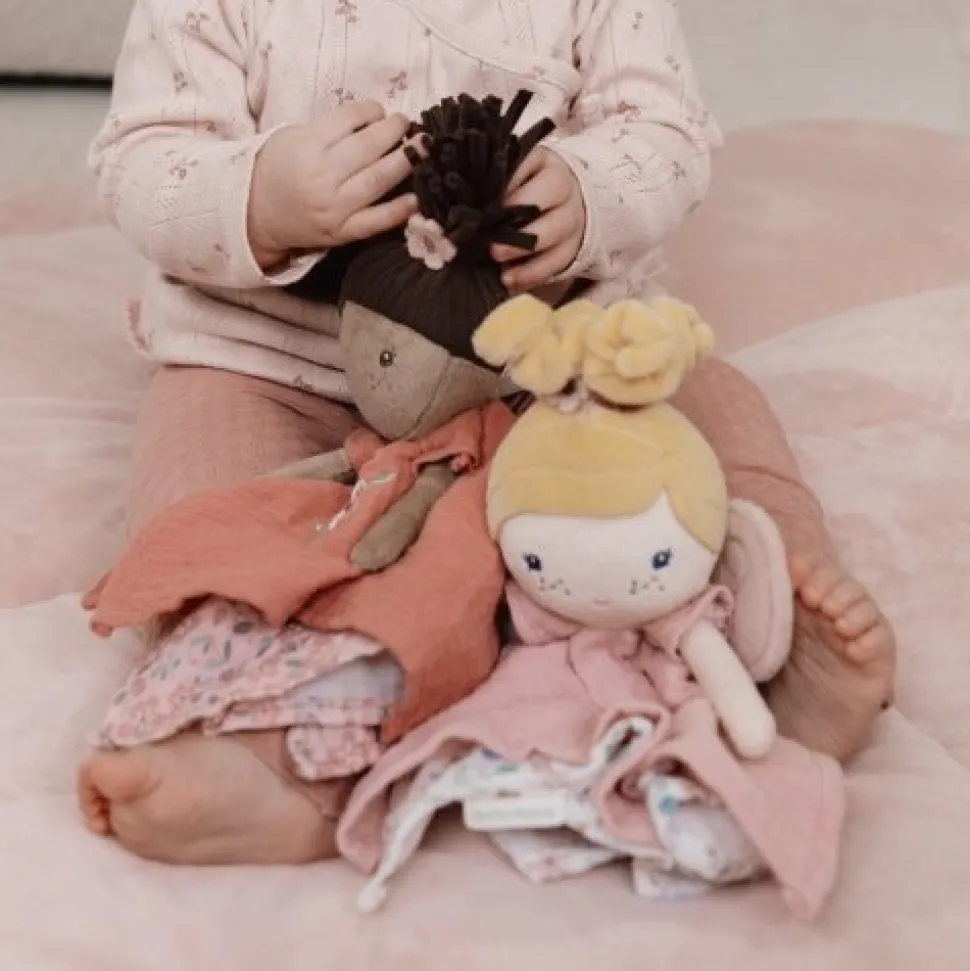 Laat je kleintje wegdromen in een wereld vol vrolijke bloemen met dit prachtige feeën knuffeldoekje. Haar zachte vleugels, geborduurde details, blonde haren en lichtroze jurkje maken haar perfect voor kleine handjes om vast te pakken en te knuffelen. Deze fee stimuleert de zintuigen en biedt comfort en geborgenheid. Ideaal voor dutjes of onderweg! Tip: zo’n uniek knuffeldoekje is ook een geweldig kraamcadeau.