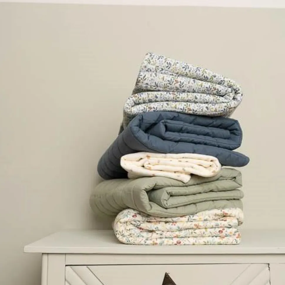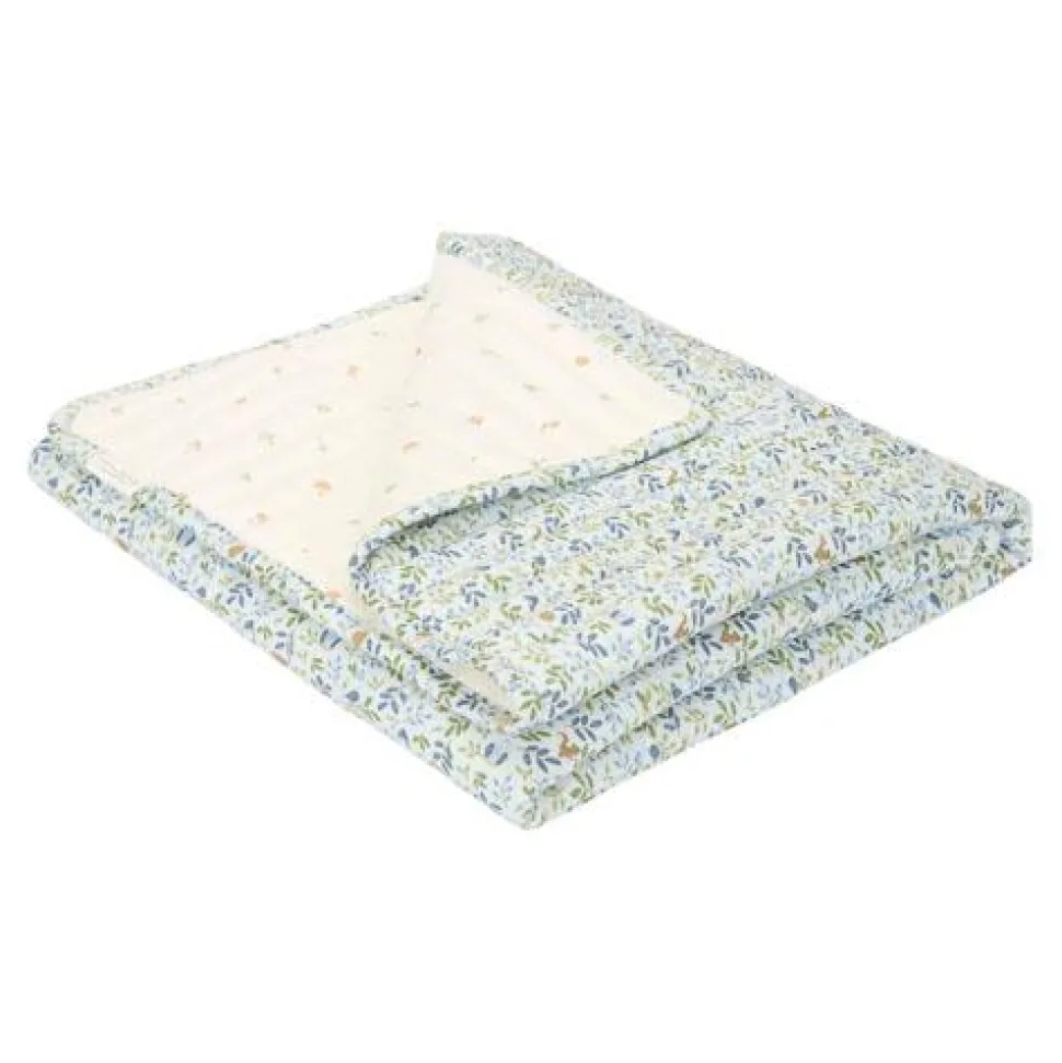 Houd je kleintje knus en warm tijdens het slapen met deze mooie ledikantdeken. Het is gemaakt van 100% biologisch katoen en met subtiele doorgestikte strepen voor een eigentijdse uitstraling. Bovendien is het licht gewatteerd voor extra zachtheid en comfort, waardoor het een ideale keuze is voor de kamer van je kleintje. Deze deken is dubbelzijdig en combineert twee prints uit de Forest Friends collectie. Je kunt kiezen voor de subtiele stijl van Forest Treasures met een gebroken witte basis versierd met kleine paddenstoelen en blaadjes, of voor het lichtblauwe canvas van Forest Adventure.
