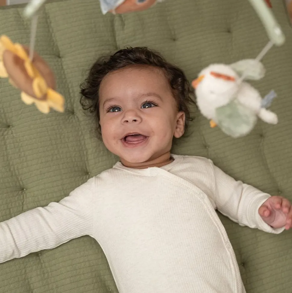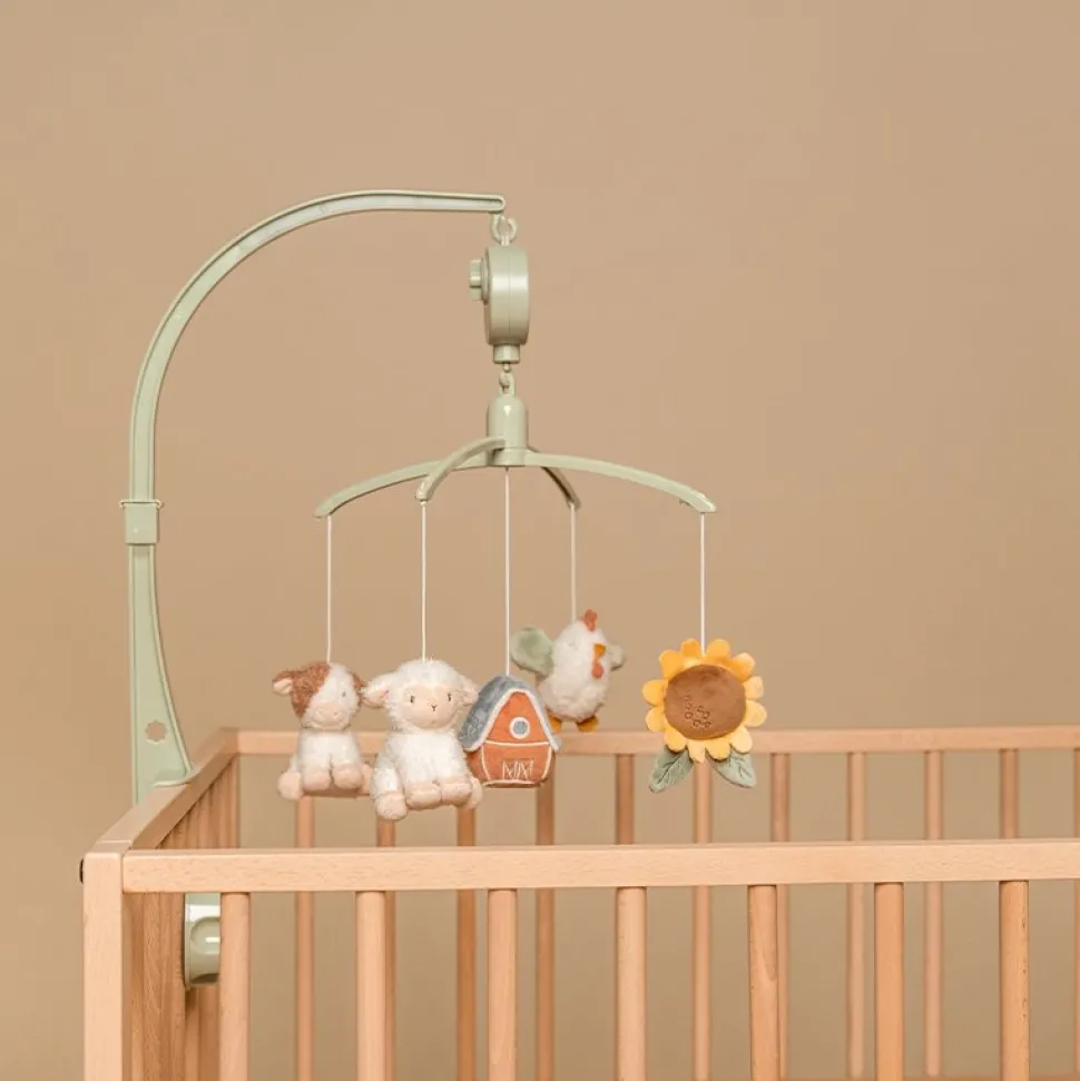 Deze mooie Little Dutch muziekmobiel werkt rustgevend voor baby’s dankzij het lieve slaapliedje. Aan de mobiel hangen vijf speeltjes uit de Little Farm collectie. Baby’s kijken graag naar de beweging van deze speeltjes, wat hun visuele ontwikkeling stimuleert. De muziekmobiel is geschikt vanaf de geboorte en eenvoudig te bevestigen aan het kinderbed of de box. WAARSCHUWING: Bevestig dit speelgoed buiten bereik van het kind. Om te voorkomen dat het kind verstrikt raakt, en zich bezeert, verwijder dit speelgoed wanneer het kind op handen en voeten begint te kruipen. Te monteren door een volwassene.