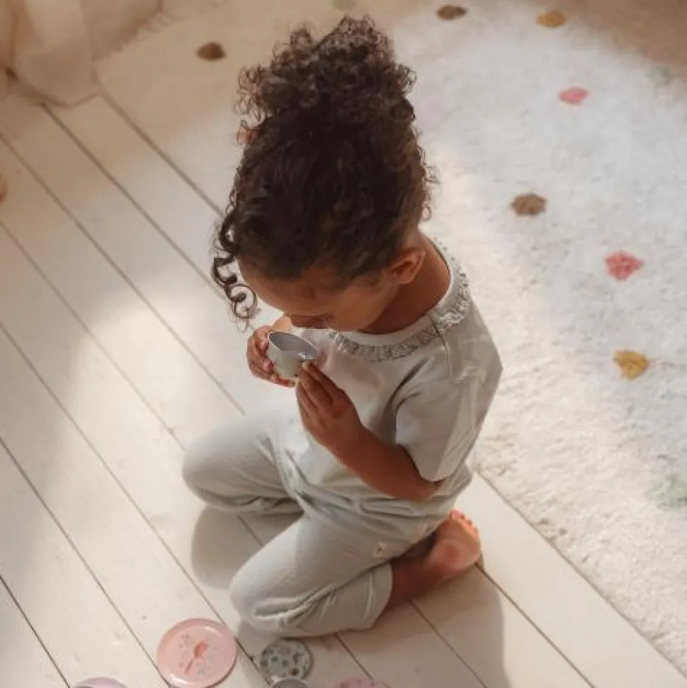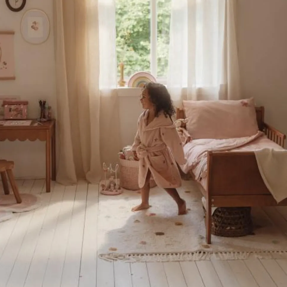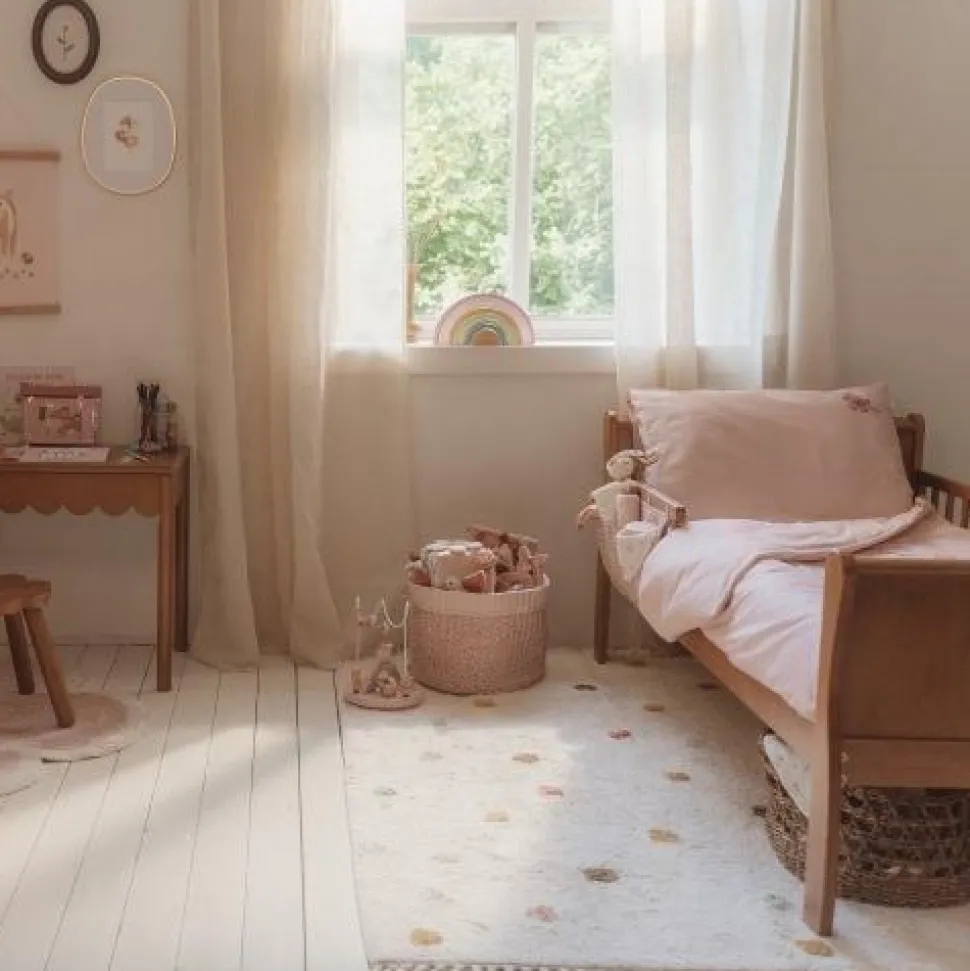 Voeg warmte toe aan de kinderkamer met een vloerkleed van Little Dutch! Dit vloerkleed heeft een beige basiskleur met vrolijke stippen in roze, blauw en okergeel. De kwastjes aan de korte zijden geven een speelse en gezellige sfeer in de ruimte. Gemaakt van 100% organic cotton en voorzien van een antislip latex achterkant, is het kleed zowel in de wasmachine als de droger te reinigen. Dankzij de zwaardere kwaliteit katoen heeft het een rijke uitstraling, en de aantrekkelijke prijs maakt het een geweldige keuze voor elk interieur.