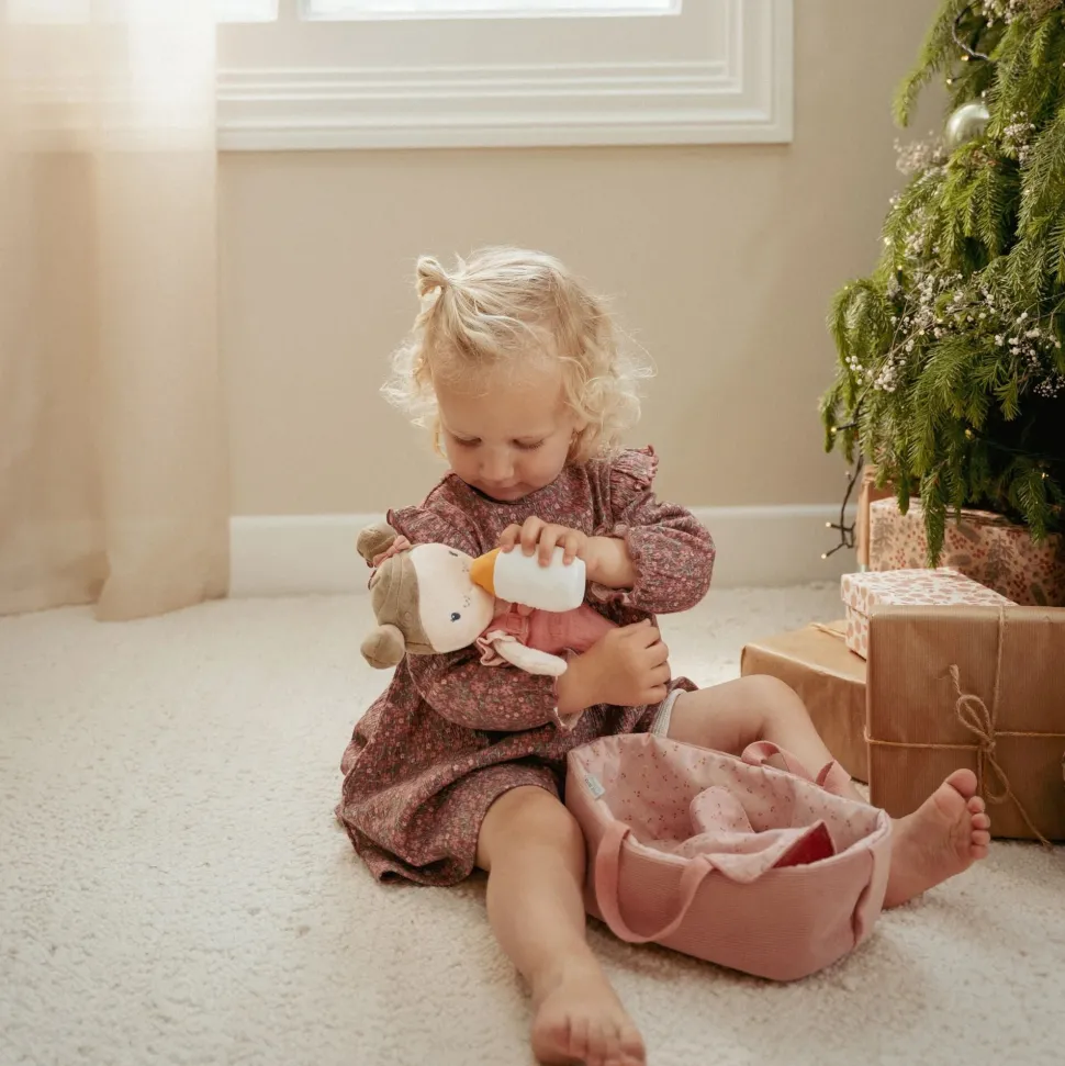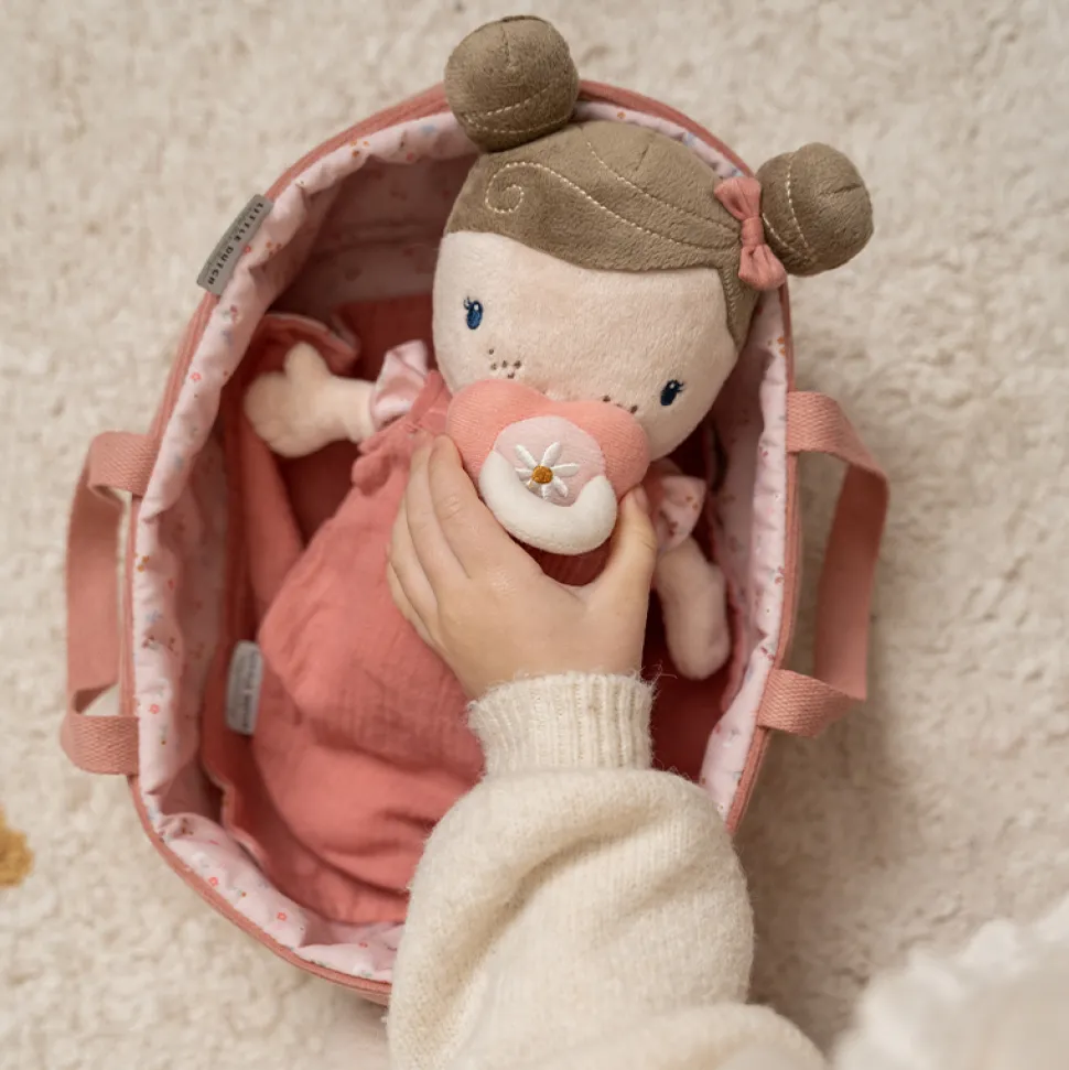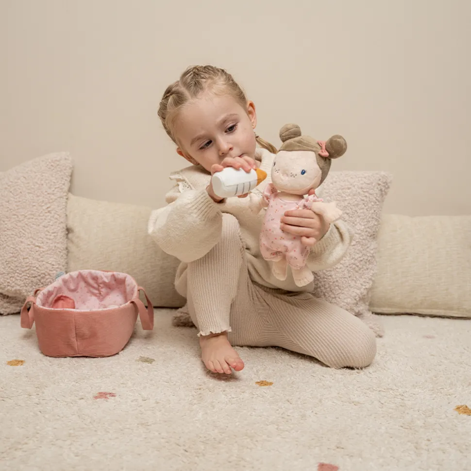 Maak kennis met kleine baby Rosa. Deze lieve pluche pop van Little Dutch wil graag geknuffeld en verzorgd worden. Zorgzame poppenmoeders en -vaders kunnen kleine Rosa de fles of de speen geven, de luier verschonen en lekker instoppen onder een dekentje. Ook kan ze makkelijk mee op reis in het schattige reismandje. Zo leren kinderen spelenderwijs een verzorgende rol op zich te nemen. Baby Rosa bewaart al hun geheimen en zal ze nooit aan iemand vertellen. Ze is heerlijk zacht om tegenaan te kruipen, wat kinderen een veilig gevoel geeft.