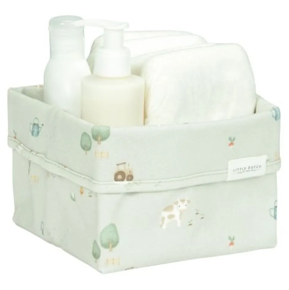 Geen rondslingerende luiers, tubes en flesjes meer: met dit grote commodemandje van Little Dutch blijft de commode mooi opgeruimd en georganiseerd! De commodemand van Little Dutch is prachtig afgewerkt en biedt een opbergplek aan alle producten die je dagelijks nodig hebt om je baby te verzorgen. Een mooie accessoire voor in de kinderkamer. Deze uit de Little Farm is verrijkt met de prachtige boerderijprint. Ook verkrijgbaar in andere formaten en vormen.
