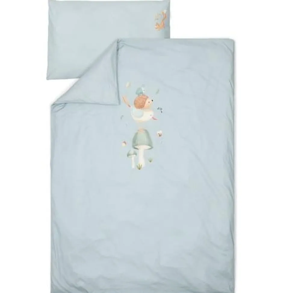 Voeg een vleugje design toe aan de babykamer met een prachtig opgemaakt bed. Met dit dekbedovertrek zal je kleintje heerlijk wegdromen naar avontuur. Het collectie Forest Friends inspireert de mooiste dromen over een avontuurlijk bos waarin een vogel, egeltje en kevertje balanceren op een paddenstoel. Het zachte dekbedovertrek is gemaakt van 100% biologisch in een effen Denim Blue kleur versierd met een speels tafereel uit het bos. Het dekbedovertrek is comfortabel, mooi afgewerkt en heeft een goed ademend vermogen.