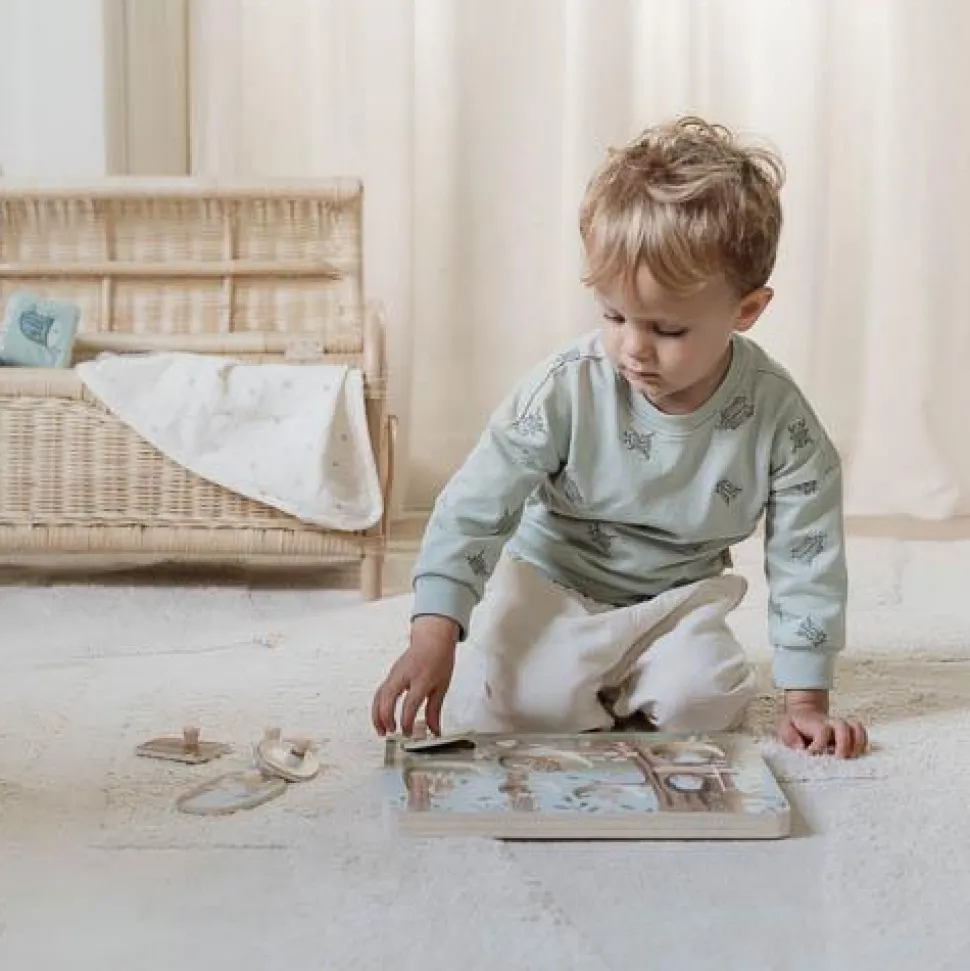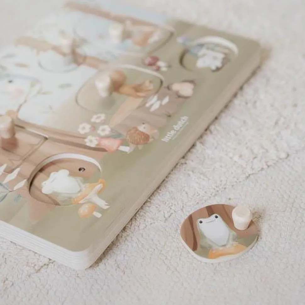 Maak kennis met alle wezentjes in het bos. Herken de vormen en unieke geluiden met deze leuke geluidenpuzzel. Als je een stukje optilt hoor je een bijpassend geluidje. Deze puzzel met 7 stukjes van dieren, blaadjes en paddenstoelen, bevordert de oog- hand coördinatie en stimuleert de woordenschat van je kindje. De sensoren reageren wanneer een puzzelstukje wordt teruggeplaatst. Puzzel bevat door licht geactiveerde sensoren – gebruik bij fel licht voor de beste resultaten. Zorg ervoor dat de schakelaar op AAN staat om de geluidsfunctie in te schakelen. Sensoren kunnen per ongeluk worden geactiveerd door direct zonlicht, dus schakel ze altijd uit als er niet mee wordt gespeeld. (Batterijen (2 x AAA) niet inbegrepen.)