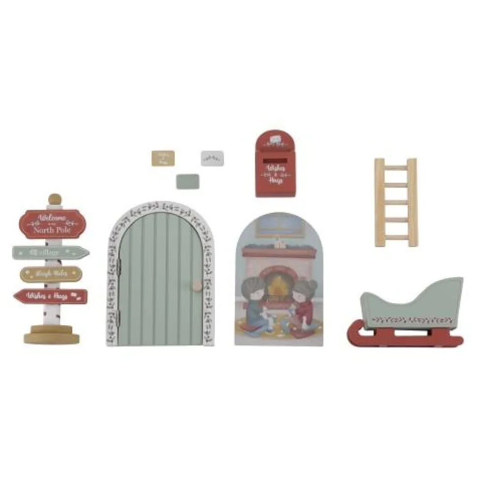 Voeg een vleugje kerstplezier toe aan je huis met het Kerstdeurtje met accessoires! Met dit leuke setje kunnen kinderen hun eigen kersttafereel creëren. Plaats het deurtje met dubbelzijdige inschijf illustratie op een plint en voeg de andere elementen toe, zoals een schattige brievenbus met kerstpost, een mini-arrenslee, een trapje naar het deurtje en een speelse wegwijzer. Laat de creativiteit de vrije loop en geniet samen van de feestelijke sfeer van Kerstmis.