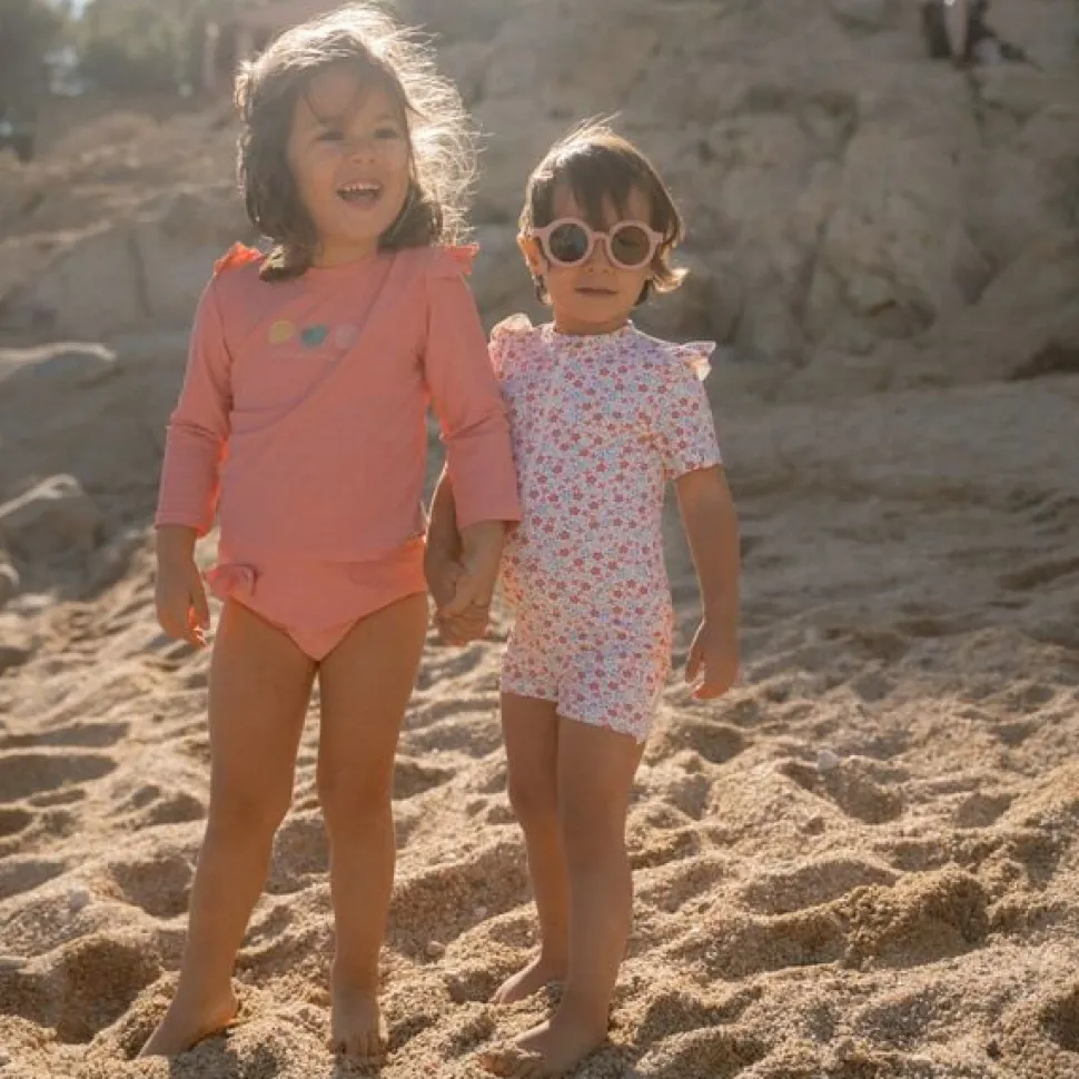 Een echte eyecatcher vol kleur. Deze ronde zonnebril met bloemenprint is gemaakt voor zonnige dagen vol plezier. Het comfortabele montuur en de goede pasvorm zorgen ervoor dat hij prettig blijft zitten tijdens het spelen. Met UV400-bescherming voor een veilige en zorgeloze zomer.