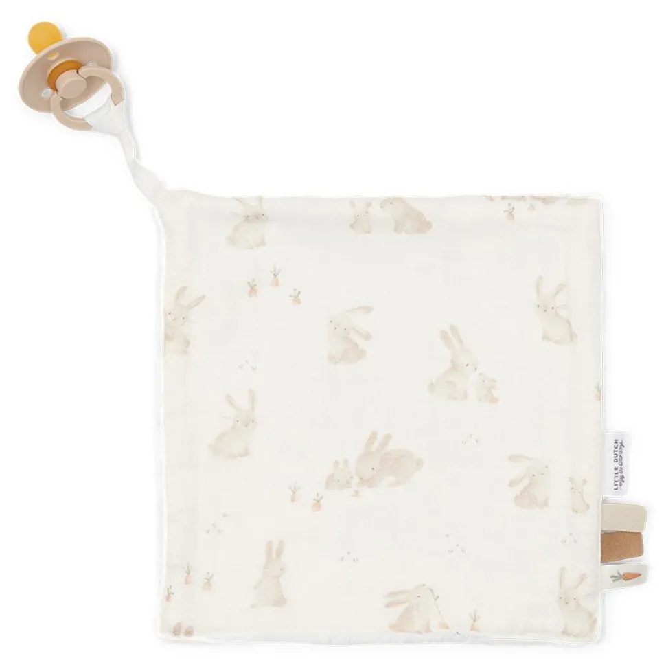 Deze knuffeldoek hydrofiel Baby Bunny van Little Dutch is gemaakt van biologisch katoen en is Oeko-Tex gecertificeerd. De voorkant van het doekje is gemaakt van een voorgewassen hydrofiele stof en de achterkant van een zachte fleece stof. Hierdoor zijn beide kanten heerlijk zacht. Perfect als speen-, speel- of troostdoek voor je baby of peuter. Aan het lusje van de knuffeldoek kun je een speen- of bijtring bevestigen. De knuffeldoek is 20 x 20 cm.