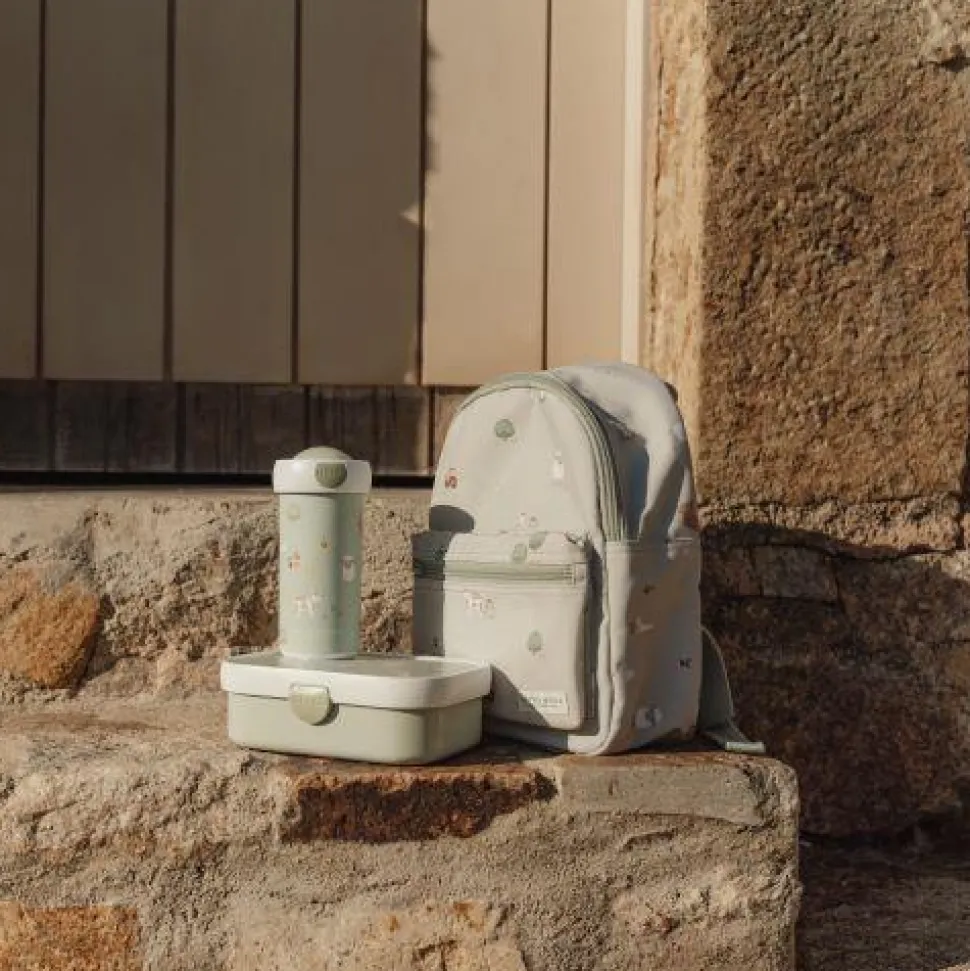 Helemaal klaar voor een nieuwe schooldag met de lunchset Little Farm van Mepal. Deze handige set bestaat uit een schoolbeker met draaidop en een lunchbox midi, voorzien van bentobakje en vorkje. De drinkbeker is gegarandeerd lekvrij en ook makkelijk door kleine kinderhandjes te gebruiken. De lunchbox biedt ruimte aan maximaal 4 boterhammen en wordt inclusief bentobakje en fruitvorkje geleverd. Zo wordt variatie rond de lunch écht kinderspel! Verras jouw zoon of dochter bijvoorbeeld eens met wat snoeptomaatjes tijdens de lunch of geef ze eens een stukje kaas of worst mee. De mogelijkheden worden bijna eindeloos! Dat wordt iedere dag een beetje extra genieten. Extra fijn voor papa en mama: zowel de schoolbeker als de lunchbox mogen gewoon in de vaatwasser.