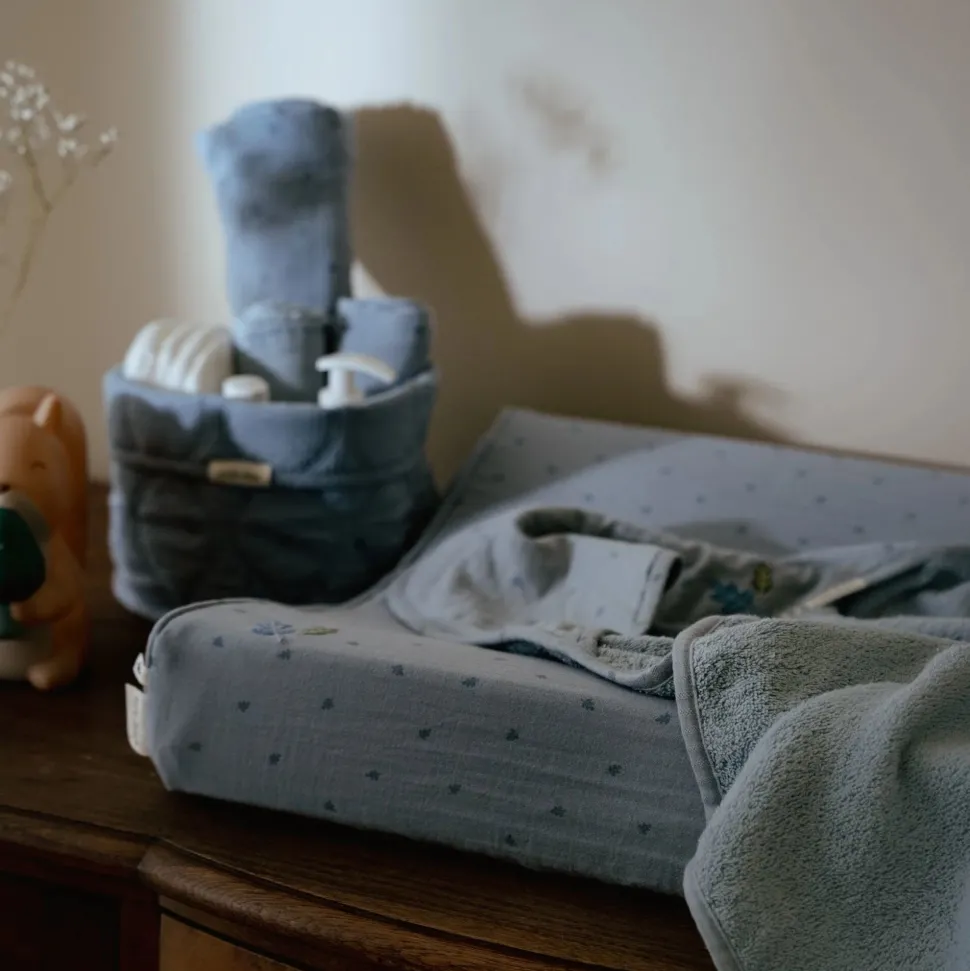 Op zoek naar een stijlvolle en praktische oplossing voor de commode? Met dit handige opbergmandje van Little Dutch houd je luiers, tubes en flesjes netjes georganiseerd en altijd binnen handbereik! Het mandje is stevig en prachtig afgewerkt, een echte aanwinst voor de kinderkamer. De zachte Pure Denim Blue kleur en subtiele print voegen een rustgevende touch toe, en het mandje is ook nog eens omkeerbaar voor variatie. Deze must-have is verkrijgbaar in verschillende formaten, vormen en kleuren.