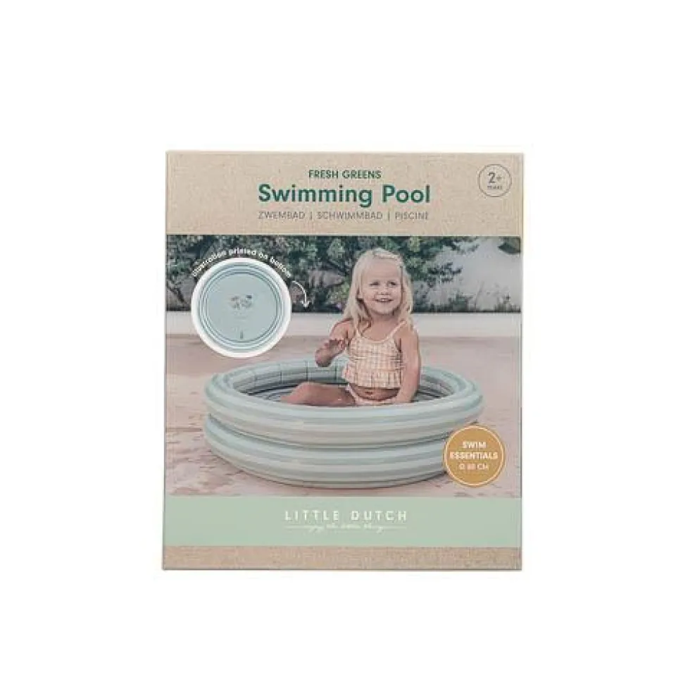 Klaar voor een hoop waterpret? Tijdens warme dagen is het Fresh Greens zwembad eenvoudig op te blazen om neer te zetten in je tuin. Met een laagje water erin heeft je kindje een heerlijk badje om in af te koelen. Een hoop speelplezier gegarandeerd! Het groen met wit gestreepte zwembadje is versierd met figuren uit de zee. Het zwembadje heeft een grootte van 80 cm.