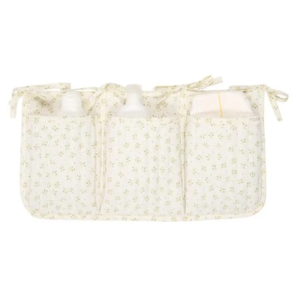 Houd alle essentiële spullen van je baby binnen handbereik met deze praktische organiser. Gemaakt van gewatteerd 100% katoen met drie ruime zakken. Hierin kun je gemakkelijk fopspenen, doekjes, slabbetjes, luiers, doekjes, speelgoed en meer opbergen – alles wat je nodig hebt om voor je kleintje te zorgen. Bevestig hem eenvoudig aan de box, commode of muur met de koordjes. Het schattige Blueberry Leaves-ontwerp brengt een vleugje natuur in huis en inspireert avonturen in bossen en tuinen.
