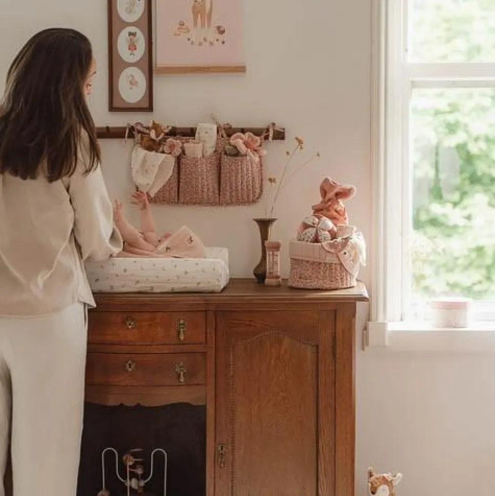 Houd alle essentiële spullen van je baby binnen handbereik met deze praktische organiser. Gemaakt van gewatteerd 100% katoen met drie ruime zakken. Hierin kun je gemakkelijk fopspenen, doekjes, slabbetjes, luiers, doekjes, speelgoed en meer opbergen – alles wat je nodig hebt om voor je kleintje te zorgen. Bevestig hem eenvoudig aan de box, commode of muur met de koordjes. Het Fairy Floral-ontwerp met roze achtergrond bedekt met mooie bloemen.