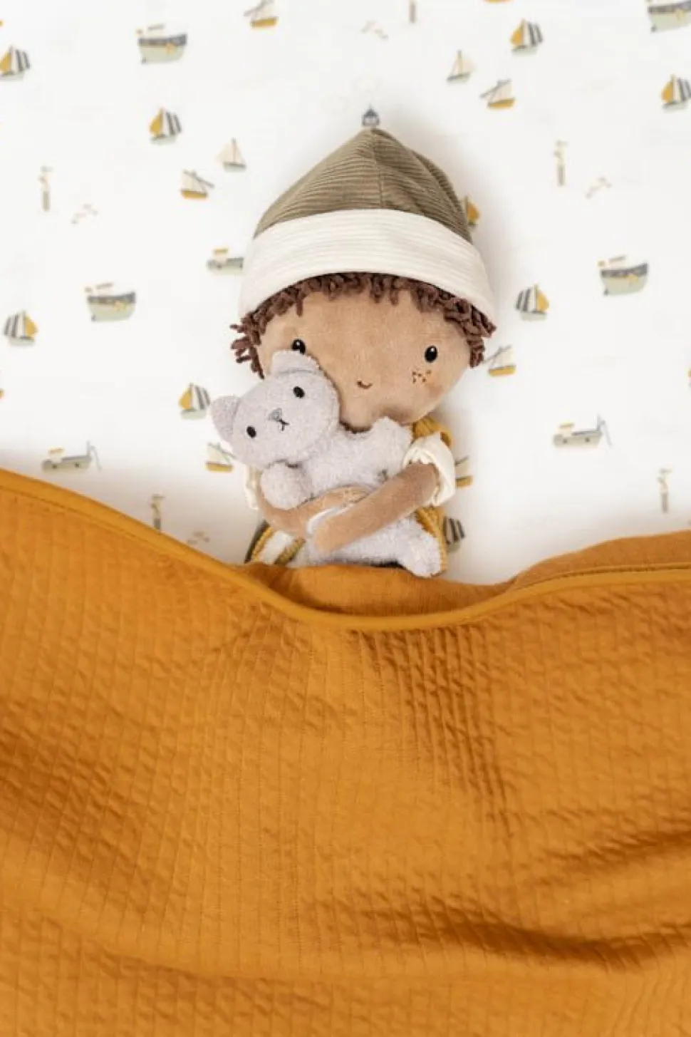 Dit is de stoere Jake. Deze pluche knuffelpop met zijn stoere muts en gele regenlaarzen kan niet wachten om geknuffeld te worden. Jake wordt je nieuwe beste vriend. Hij zal er altijd zijn als je wilt spelen of een dikke knuffel nodig hebt. Samen met zijn grijze kat zoekt hij graag naar kleine schatten. Of het nu in huis is of op het strand, hij weet altijd iets bijzonders te vinden. Wat zal de eerste schat zijn die jullie samen zullen vinden? Jake is zacht en knuffelig, 35 cm lang en is verpakt in een mooie opbergdoos.