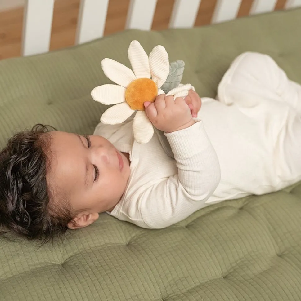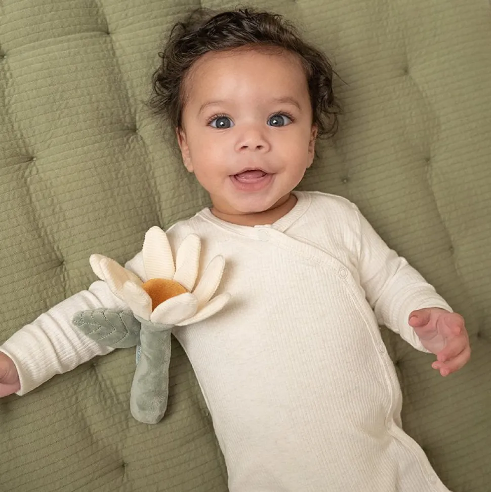 Hoe schattig is deze rammelaar in de vorm van een bloem uit de Little Farm collectie! Als je er mee speelt hoor je een plezierig geluidje. In de blaadjes van de bloem is een knisper verstopt voor extra plezier. De rammelaar stimuleert de hand-oogcoördinatie, is van heerlijk zacht materiaal gemaakt en kan makkelijk door kleine kinderhandjes vastgepakt worden.