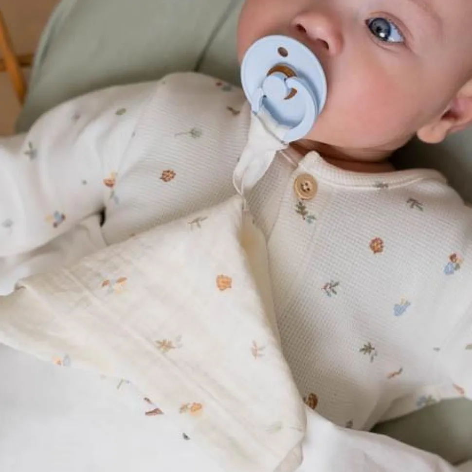 Verrijk de kalmerende momenten van je baby met dit speendoekje. Gemaakt van 100% biologisch katoenen hydrofiel, is het onweerstaanbaar zacht en absorberend. Het ontwerp van Forest Treasures, met zijn speelse combinatie van paddenstoeltjes, blaadjes, eikeltjes en dennenappels tegen een gebroken witte achtergrond, roept de serene en rustige sfeer van het bos op. De labeltjes aan de zijkant bieden je kleintje nog meer om te ontdekken en mee te kroelen. Met de handige lus kun je de speen eenvoudig bevestigen, zodat deze altijd binnen handbereik is tijdens de momenten waarop je kleintje hem het meest nodig heeft.