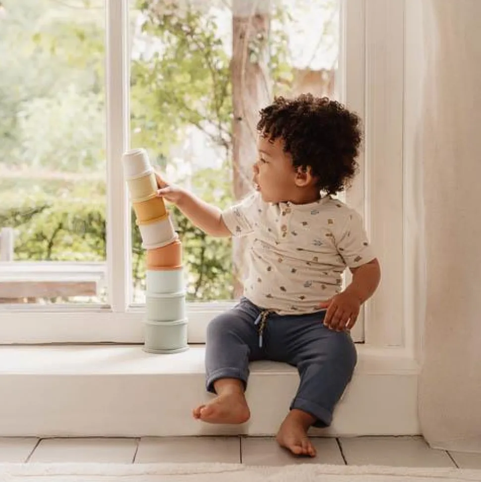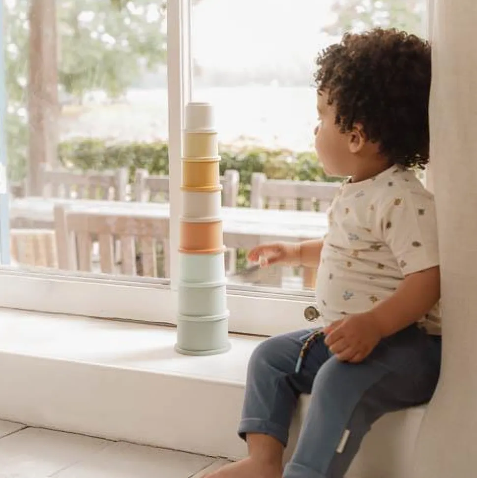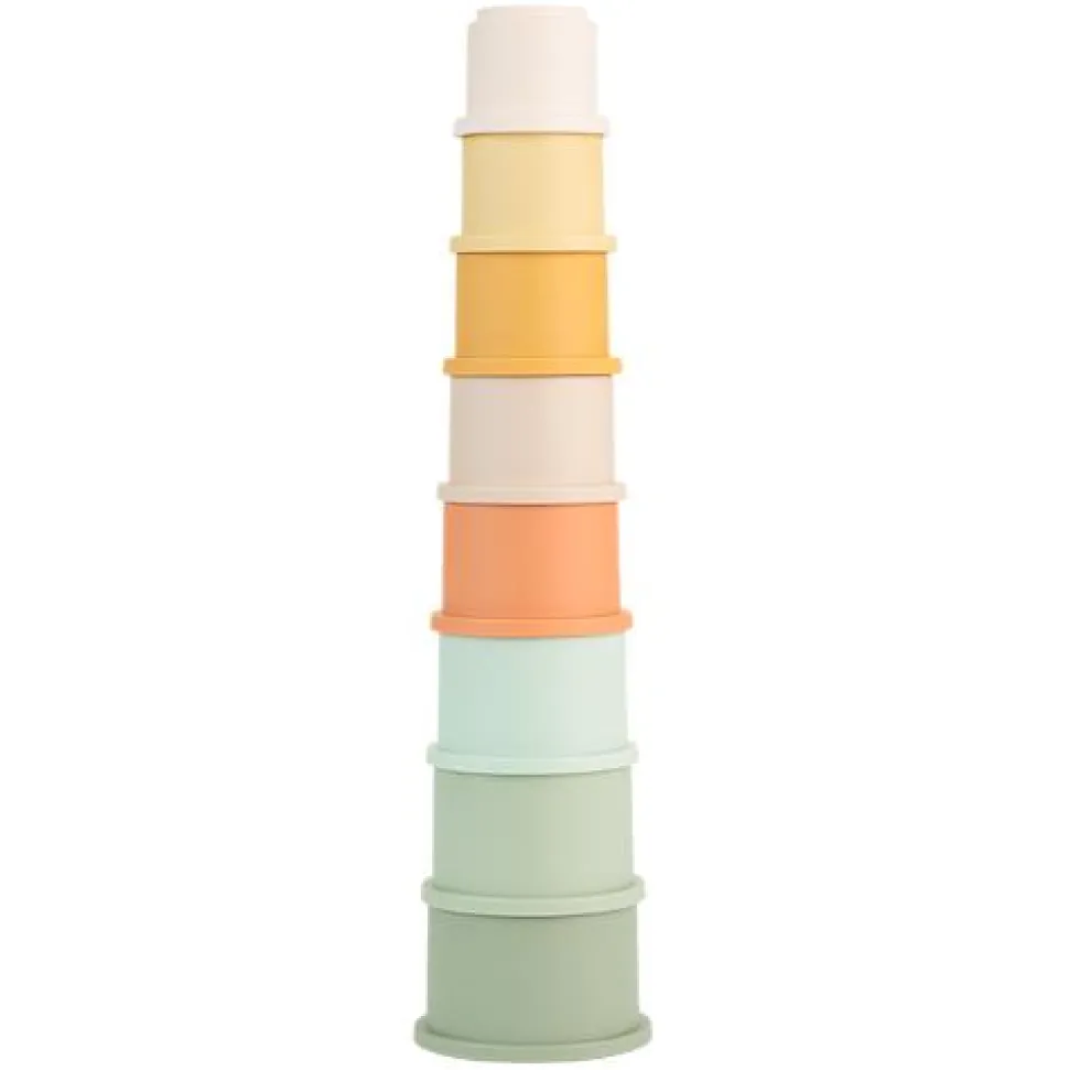 1,2,3 hoe hoog wordt de toren?! Deze set met bekers daagt je peuter uit om ze één voor één op elkaar te stapelen. Hoe groot zal de vreugde zijn als de toren helemaal staat? En hoe leuk is het om de toren weer om te gooien! Uren speelplezier gegarandeerd. Met de vier vrolijke tinten zullen de bekers je kleintje zeker vermaken. De 8 stapelbekers hebben een nummer aan de bovenkant en passen gemakkelijk in elkaar om te voorkomen dat de toren te snel valt. Je kleintje leert over cijfers en ontwikkelt fijne motoriek. Stapel en maak de toren in de box, op de vloer of in de badkuip of zandbak. Dankzij het veelzijdige materiaal kan het overal worden gebruikt. Plaats de kleine bekers in elkaar om ze eenvoudig op te bergen. De toren bestaat uit 8 stapelbekers, variërend in diameter tussen 6 en 9,5 cm en de toren is in totaal 43 cm hoog als je alle bekers op elkaar zet. Wordt geleverd in full-colour doos. Geschikt voor kinderen vanaf 12 maanden.