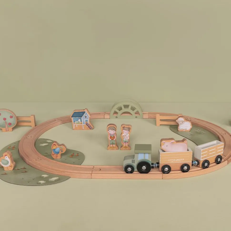 Tuut tuut! Ga op eindeloze avonturen met deze houten treinbaan uit de Little Farm collectie. Stap op de trein en ga naar de boerderij, samen met alle diertjes. Wat een gezelligheid! Elk houten figuur is aan beide kanten voorzien van een gedetailleerde illustratie.