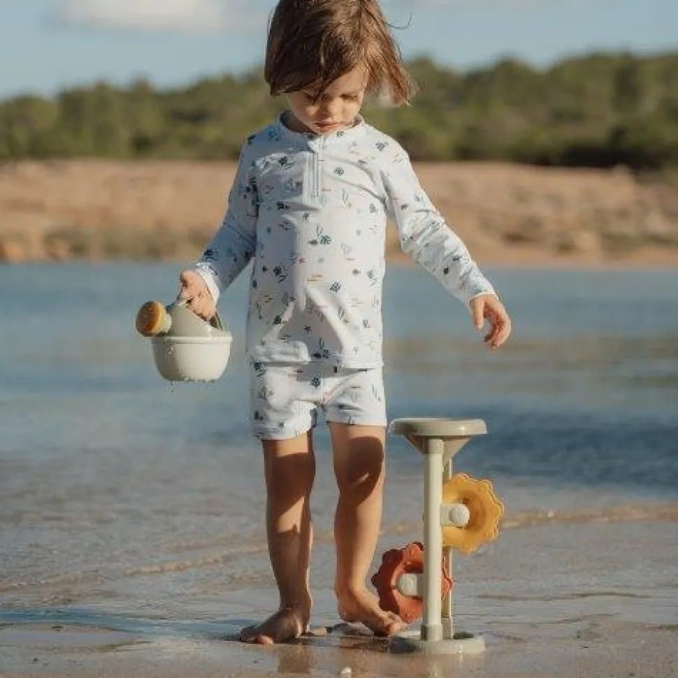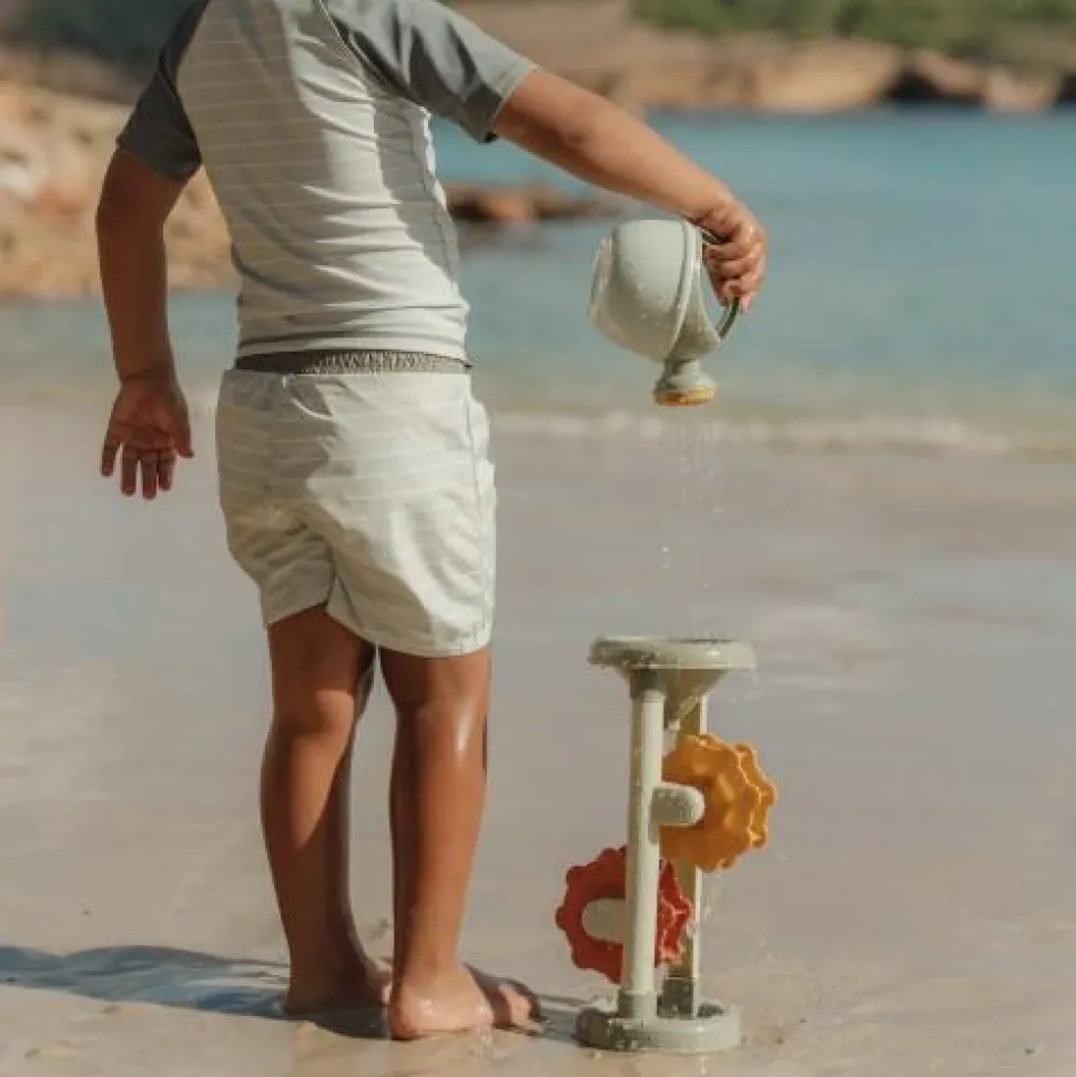 Al spelenderwijs kennismaken met zwaartekracht en snelheid? Dat kan met deze water- en zandmolen Fresh Greens. Bovenaan het speelgoed zit een trechter waar water of zand inkomt. Wanneer het water of zand door de trechter heen is, komt het op de molens terecht die rond zullen draaien. Fascinerend speelgoed om mee te spelen, naar te kijken om te ontdekken hoe het werkt.
